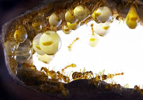 Are you searching for a golden honeypot ant species that is active, easy-to-keep, and has golden honeypots? — our mini golden honeypot queen ants are for you!